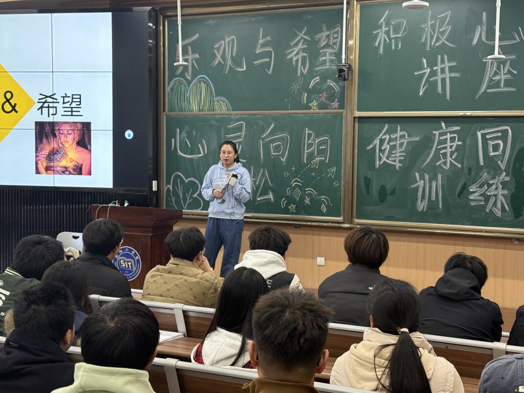 为扎实推进校园心理健康教育工作,帮助广大学生缓解学业压力、培育积极心理品质,筑牢心理健康防护屏障,11 月 11 日,大学生心理咨询与发展中心郭思含老师在机械与工程学院102 教室举办了主题为“心灵向阳,健康同行”的乐观与希望积极心理学讲座及放松团体训练,机械与工程学院50余名学生参与其中。