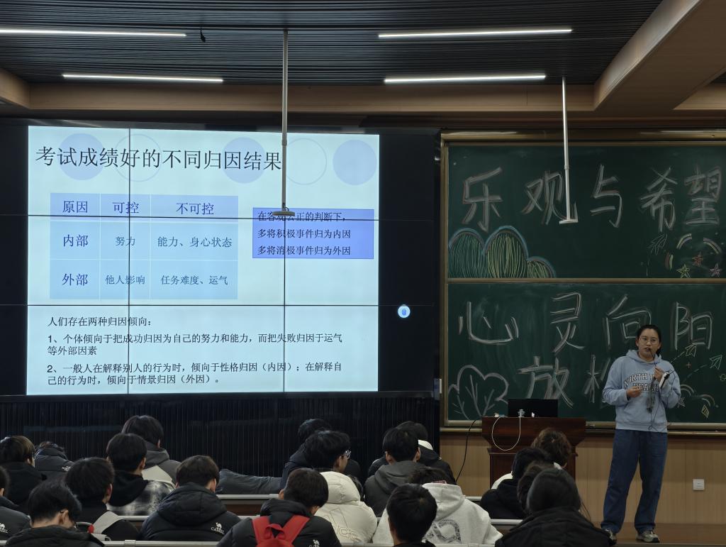 讲座伊始,郭思含老师以两个寓意深刻的故事开启了本次心理成长之旅。她首先分享了尼克・胡哲“无手无脚却勇闯人生巅峰” 的励志事迹,通过其直面生理缺陷、克服重重磨难的人生历程,让同学们真切体会到乐观心态对突破困境、实现自我价值的强大支撑;随后,她结合潘多拉魔盒的经典神话,深入剖析 “灾难散尽后,希望仍留人间” 的精神内核,巧妙引出 “乐观与希望是守护心理健康的核心力量” 这一观点,为后续的分享奠定了情感基础,也激发了同学们对心理健康话题的深入思考。
