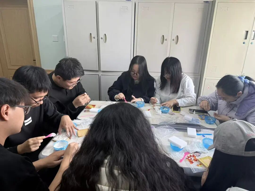 • 正念创意手作体验区:同学们沉下心专注创作,在贴钻、石膏涂色的趣味手作中,将正念理念融入每一个细节,在慢下来的时光里平复浮躁、解压放松,把美好心意凝结成独一无二的专属手作,收获满满的成就感与幸福感。